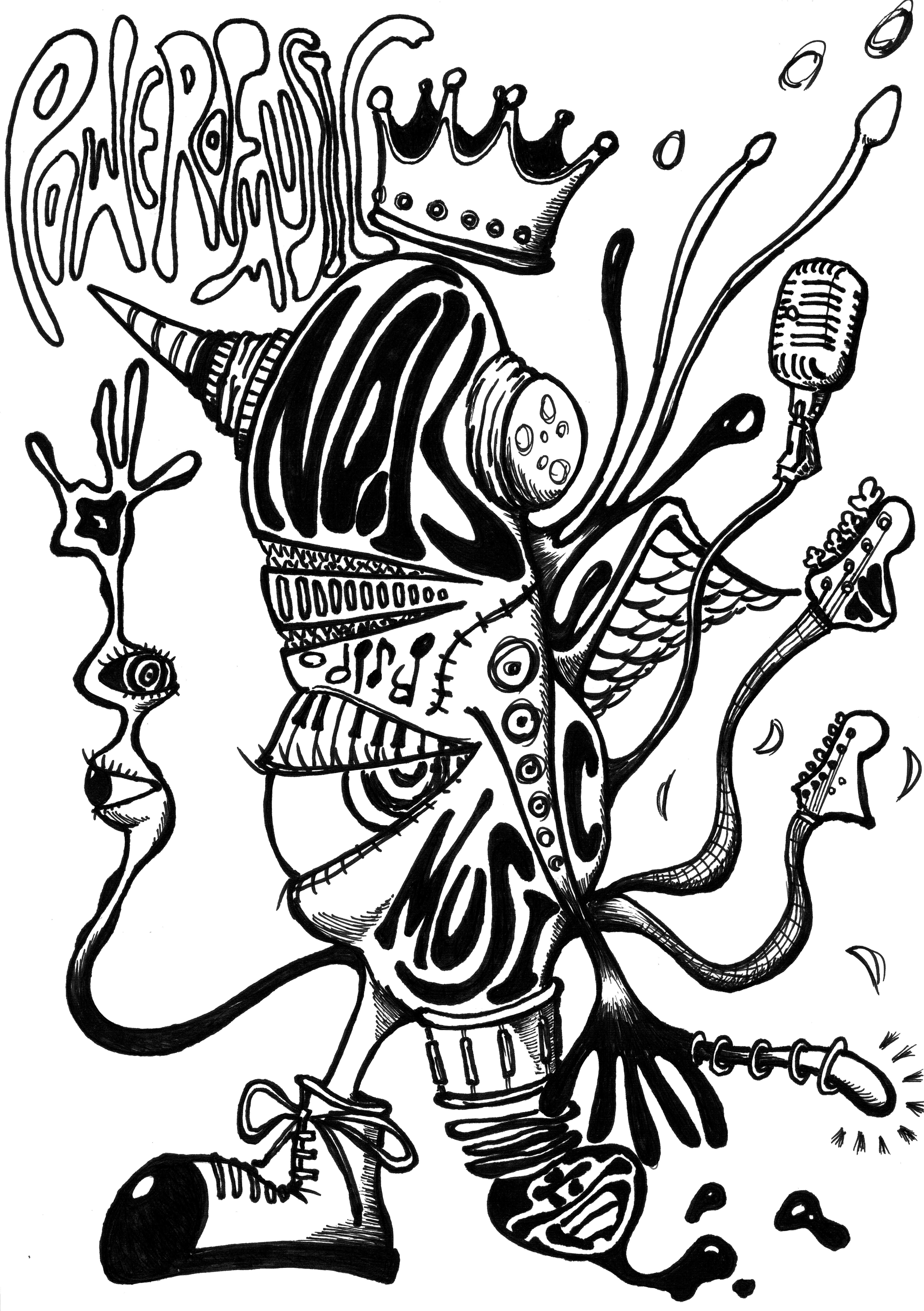 今回のパーカーはドラムだけでなく、マイク、ギター、ベース、キーボードもMIXされたデザインのMUSIC MONSTER。